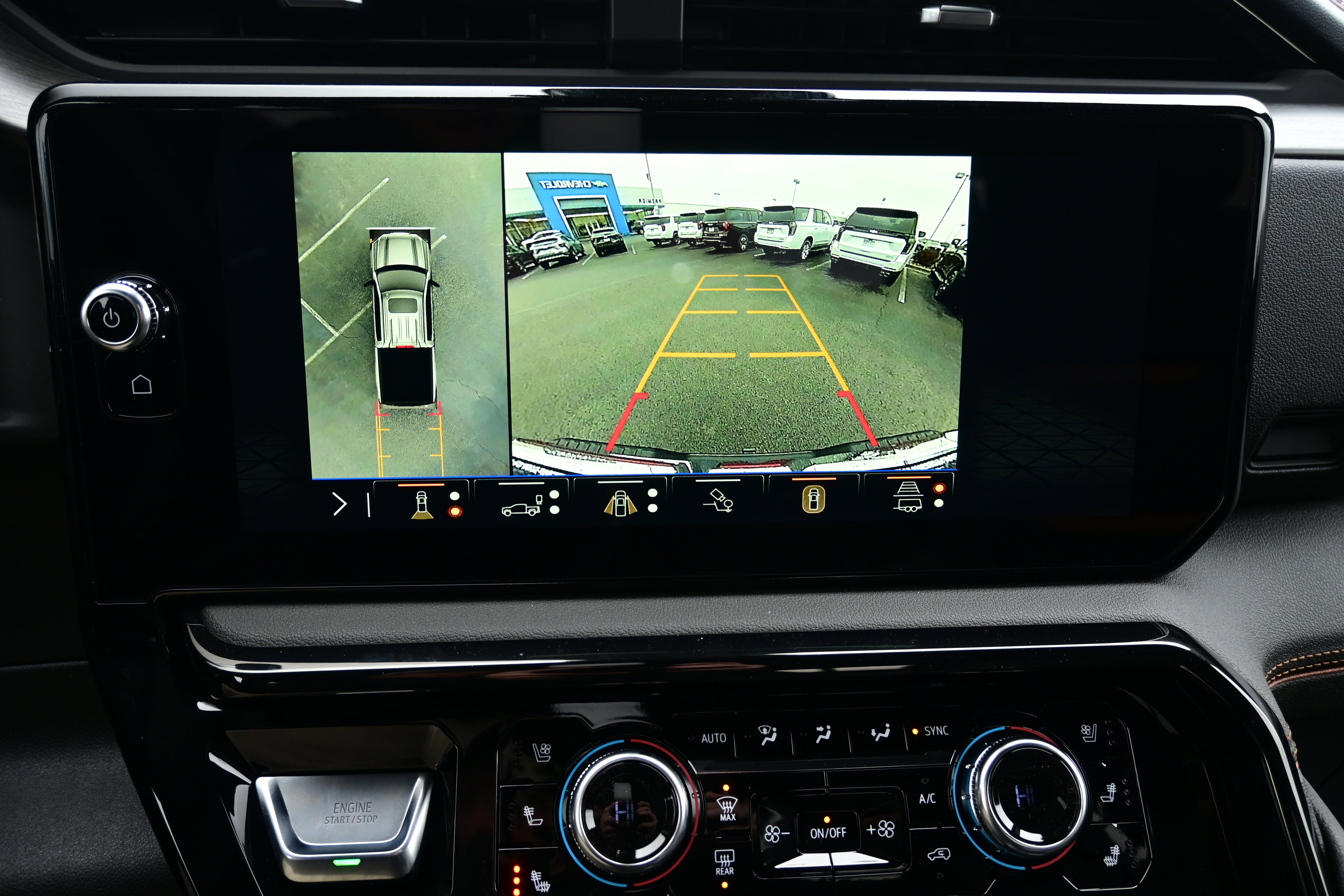 - Allows driver to see inside the cargo bed on the infotainment display to help with 5th wheel or gooseneck hitching and to check cargo