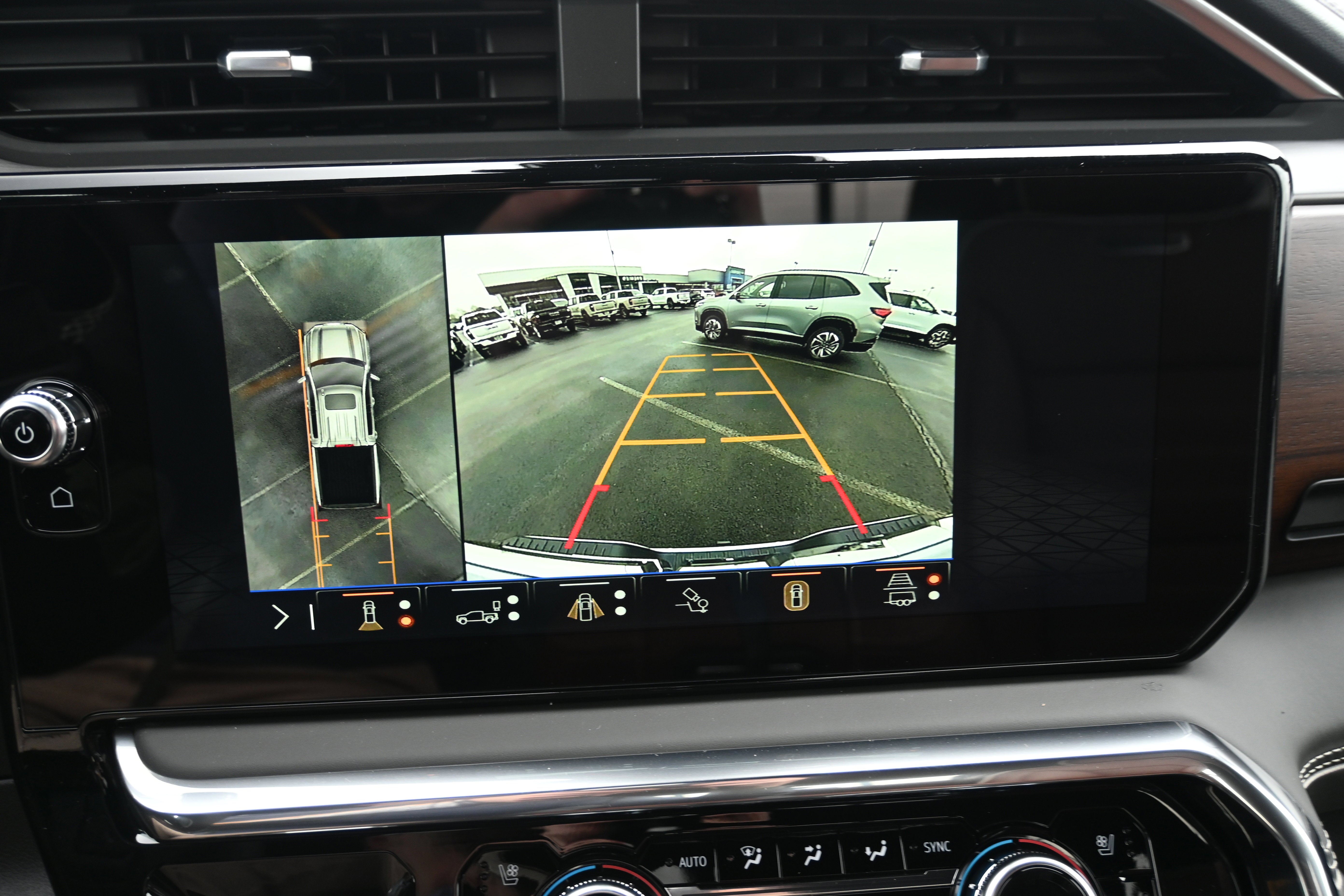 - Allows driver to see inside the cargo bed on the infotainment display to help with 5th wheel or gooseneck hitching and to check cargo