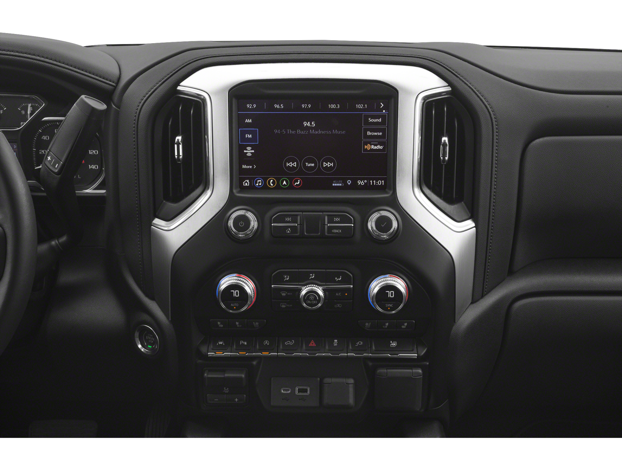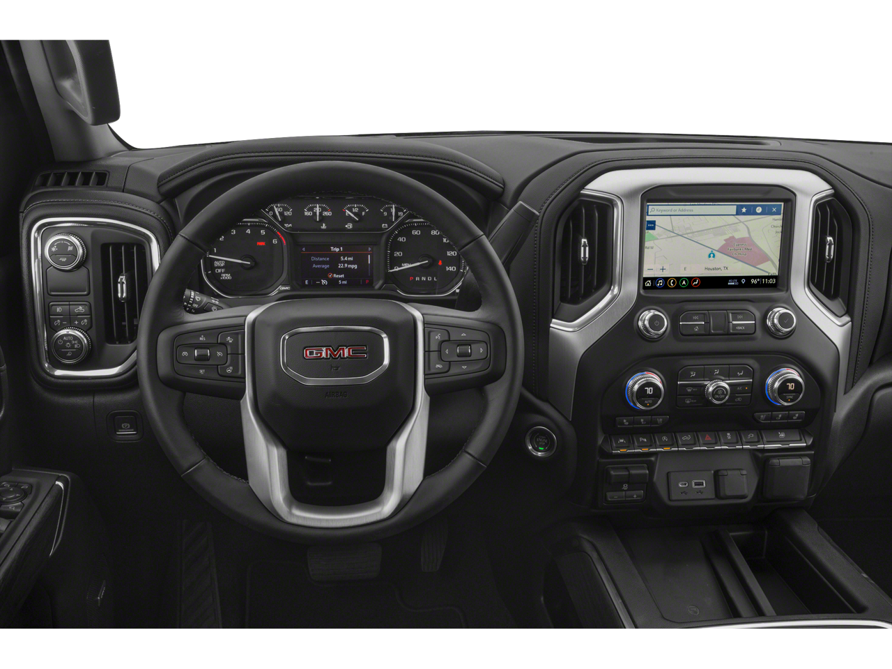 Preferred Equipment Group 4SA (12-Volt Rear Auxiliary Power Outlet, 120-Volt Bed Mounted Power Outlet, 120-Volt Instrument Panel Power Outlet, 170 Amp Alternator, 4G LTE Wi-Fi Hotspot Capable, Auxiliary External Transmission Oil Cooler, Chrome Grille, Color-Keyed Carpeting Floor Covering, Compass, Deep-Tinted Glass, Electric Rear-Window Defogger, Electrical Lock Control Steering Column, Front Frame-Mounted Black Recovery Hooks, GMC Connected Access Capable, HD Radio, Heated Driver & Front Outboard Passenger Seating, Heavy-Duty Rear Locking Differential, Hitch Guidance, Hitch Guidance w/Hitch View, In-Vehicle Trailering App, Integrated Trailer Brake Controller, Keyless Open & Start, LED Cargo Area Lighting, Manual Tilt-Wheel & Telescoping Steering Column, OnStar & GMC Connected Services Capable, Power Door Locks, Power Front Passenger Windows w/Express Up/Down, Power Front Windows w/Driver Express Up/Down, Power Rear Windows w/Express Down, ProGrade Trailering System, Rear Dual USB Charging-Only Ports, Rear Wheelhouse Liners, Remote Vehicle Starter System, Steering Wheel Audio Controls, and Theft Deterrent System (Unauthorized Entry)), SLT Convenience Package (2 USB Ports, 2 USB Ports (1st Row), Floor-Mounted Center Console, Front Bucket Seats, Heated 2nd Row Outboard Seats, Power Sliding Rear Window w/Rear Defogger, Universal Home Remote, and Ventilated Driver & Front Passenger Seats), Trailering Package, 10-Speed Automatic, 4WD, Jet Black Leather, 10-Way Power Driver Seat Adjuster w/Lumbar, 10-Way Power Passenger Seat Adjuster w/Lumbar, 3.23 Rear Axle Ratio, 4-Wheel Disc Brakes, 4" Round Chromed Tubular Assist Steps (LPO), 6 Speakers, 6-Speaker Audio System Feature, ABS brakes, Air Conditioning, All-Weather Floor Liner (LPO), Alloy wheels, AM/FM radio: SiriusXM with 360L, Apple CarPlay/Android Auto, Auto-dimming door mirrors, Auto-dimming Rear-View mirror, Automatic temperature control, Brake assist, Bumpers: chrome, Delay-off headlights, Driver door bin, Driver Memory, Driver vanity mirror, Dual front impact airbags, Dual front side impact airbags, Electronic Stability Control, Front 40/20/40 Split-Bench Seat, Front anti-roll bar, Front Center Armrest w/Storage, Front dual zone A/C, Front fog lights, Front reading lights, Front wheel independent suspension, Fully automatic headlights, Heated door mirrors, Heated front seats, Heated steering wheel, Heavy Duty Suspension, Illuminated entry, Low tire pressure warning, Memory seat, Occupant sensing airbag, Outside temperature display, Overhead airbag, Overhead console, Panic alarm, Passenger door bin, Passenger vanity mirror, Perforated Leather-Appointed Front Seat Trim, Power door mirrors, Power driver seat, Power passenger seat, Power steering, Power windows, Premium audio system: GMC Infotainment System, Radio data system, Radio: Premium GMC Infotainment Sys w/Multi-Touch, Rear reading lights, Rear seat center armrest, Rear step bumper, Rear window defroster, Remote keyless entry, Security system, SiriusXM w/360L, Speed control, Speed-sensing steering, Split folding rear seat, Spray-On Pickup Bed Liner w/GMC Logo, Steering wheel mounted audio controls, Tachometer, Telescoping steering wheel, Tilt steering wheel, Traction control, Trip computer, Variably intermittent wipers, Voltmeter, and Wheels: 18" x 8.5" 6-Spoke Machined Aluminum.