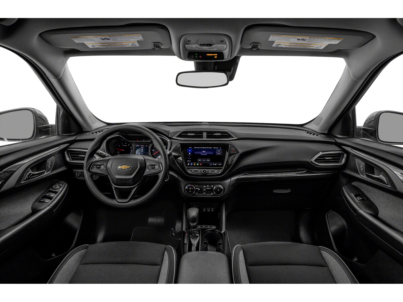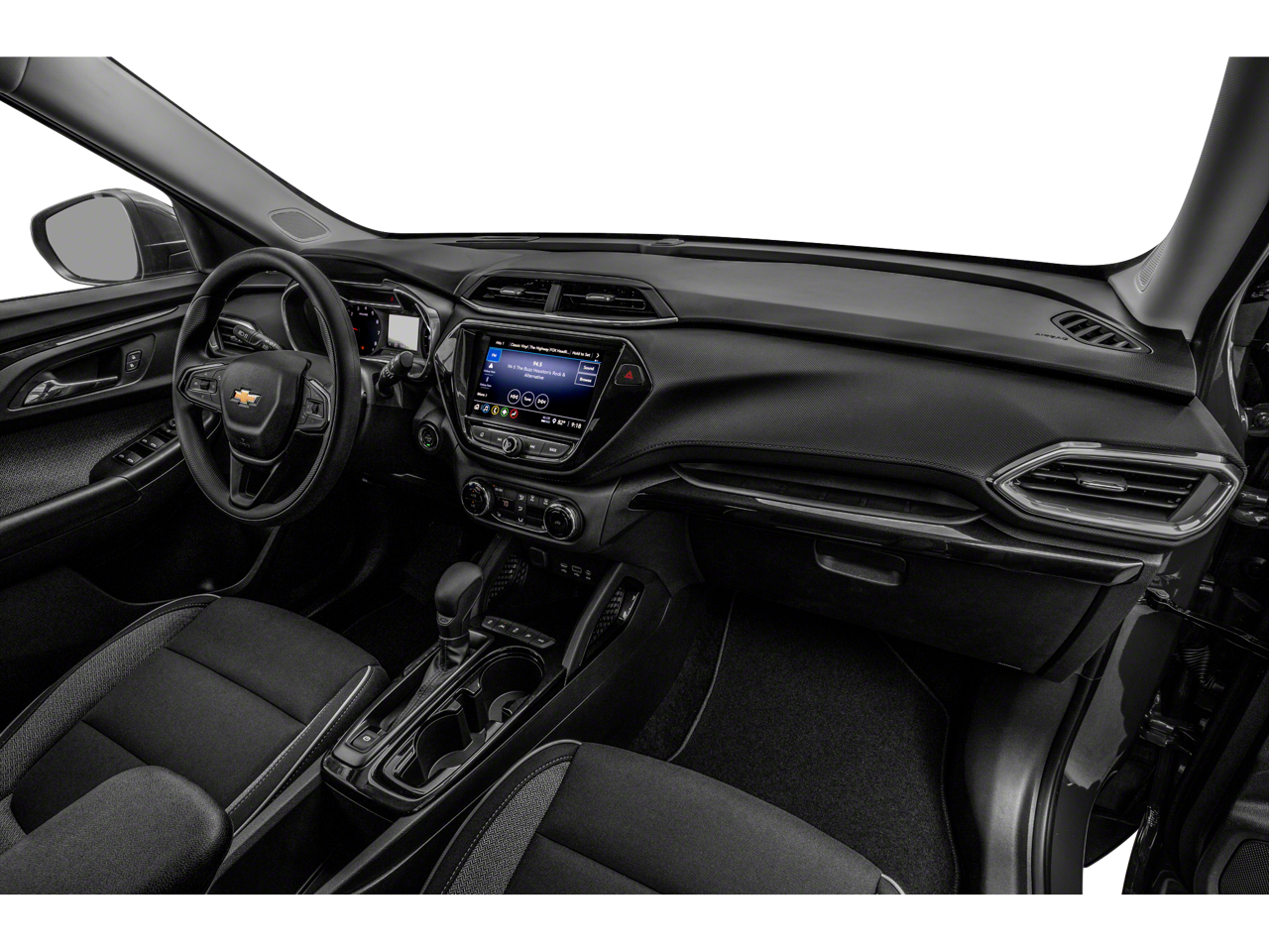 Driver Confidence & Cruise Package (Electronic Cruise Control w/Set & Resume Speed, Lane Change Alert w/Side Blind Zone Alert, Rear Cross Traffic Alert, and Rear Park Assist), Preferred Equipment Group 1LS, 4-Way Manual Front Passenger Seat Adjuster, 4-Wheel Disc Brakes, 5.45 Axle Ratio, 6 Speakers, 6-Speaker Audio System Feature, 6-Way Manual Driver Seat Adjuster, ABS brakes, Air Conditioning, Alloy wheels, AM/FM radio, Apple CarPlay/Android Auto, Auto High-beam Headlights, Brake assist, Bumpers: body-color, Cloth Seat Trim, Compass, Delay-off headlights, Driver door bin, Driver vanity mirror, Dual front impact airbags, Dual front side impact airbags, Electronic Stability Control, Emergency communication system: OnStar and Chevrolet connected services capable, Exterior Parking Camera Rear, Flat-Folding Front Passenger Seatback, Front & Rear All-Weather Floor Liners (LPO), Front anti-roll bar, Front Bucket Seats, Front Center Armrest, Front reading lights, Front wheel independent suspension, Fully automatic headlights, Illuminated entry, Knee airbag, Low tire pressure warning, Occupant sensing airbag, Overhead airbag, Overhead console, Panic alarm, Passenger door bin, Passenger vanity mirror, Power door mirrors, Power steering, Power windows, Radio data system, Radio: Chevrolet Infotainment 3 System, Rear side impact airbag, Rear window defroster, Rear window wiper, Remote keyless entry, Ride & Handling Suspension, Security system, Split folding rear seat, Spoiler, Steering wheel mounted audio controls, Tachometer, Telescoping steering wheel, Tilt steering wheel, Traction control, Trip computer, Variably intermittent wipers, Wheels: 17" Silver-Painted Aluminum, and Wireless Apple CarPlay/Android Auto.