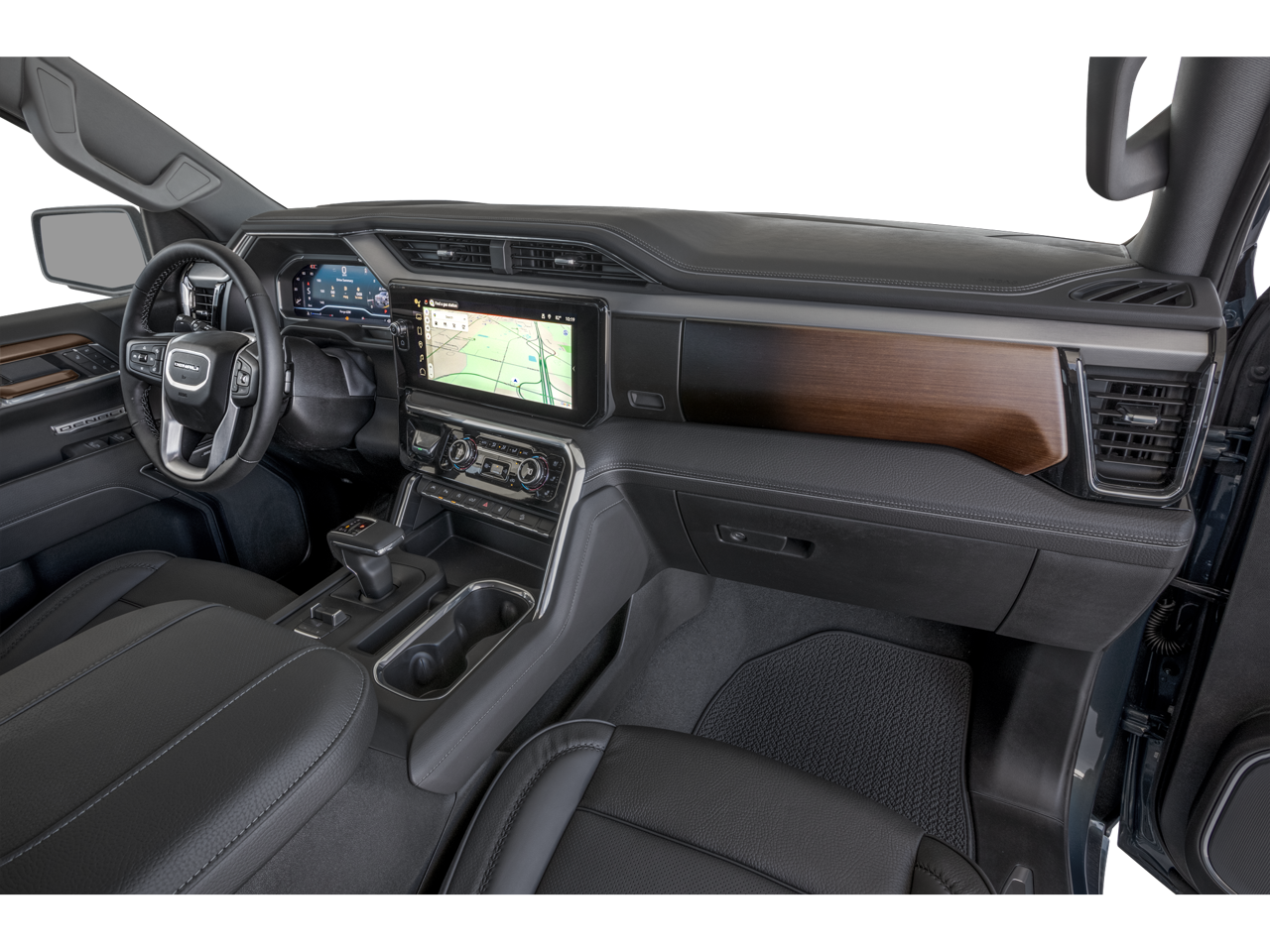 Denali Reserve Package (GMC MultiPro Power Steps, Power Sunroof, Wheel Locks (Set of 4) (LPO), and Wheels: 22" x 9" Painted Aluminum), Preferred Equipment Group 5SA (120-Volt Bed Mounted Power Outlet, 120-Volt Interior Power Outlet, 170 Amp Alternator, 2 Charge/Data USB Ports Inside Center Console, 2 Type-C Charge-Only Rear USB Ports, 2 USB Ports, Auto-Locking Rear Differential, Auxiliary External Transmission Oil Cooler, Bed View Camera, Chrome Header w/Signature Denali Chrome Grille, Chrome Recovery Hooks, Chrome Wheel To Wheel Assist Steps, Color-Keyed Carpeting Floor Covering, Deep-Tinted Glass, Electric Rear-Window Defogger, Floor-Mounted Center Console, Front Rain-Sensing Wipers, HD Surround Vision, Heated 2nd Row Outboard Seats, Heated Driver & Front Outboard Passenger Seating, Heavy-Duty Air Filter, Hill Descent Control, Hitch View, In-Vehicle Trailering System App, Integrated Trailer Brake Controller, Keyless Open & Start, LED Cargo Area Lighting, OnStar Services Capable, Perimeter Lighting, Power Door Locks, Power Front Passenger Windows w/Express Up/Down, Power Front Windows w/Driver Express Up/Down, Power Rake & Telescoping Steering Column, Power Rear Windows w/Express Down, Power Sliding Rear Window w/Rear Defogger, Premium Bose 7-Speaker Sound System, Push Button Start, Rear Cross Traffic Braking, Rear Pedestrian Detection, Rear Wheelhouse Liners, Remote Vehicle Starter System, SiriusXM w/360L Trial Subscription, Spray-On Pickup Bedliner w/GMC Logo, Steering Wheel Audio Controls, Theft Deterrent System (Unauthorized Entry), Trailer Camera Provisions, Trailer Side Blind Zone Alert, Ultrasonic Front & Rear Park Assist, Universal Home Remote, Ventilated Driver & Front Passenger Seats, Wi-Fi Hotspot Capable, and Wireless Charging), Technology Package (Multicolor 15" Diagonal Head-Up Display and Rear Camera Mirror), Trailering Package (Hitch Guidance), 10-Speed Automatic, 4WD, Black Leather, 12-Way Power Driver Seat Adjuster w/Lumbar, 12-Way Power Passenger Seat Adjuster w/Lumbar, 220 Amp Alternator, 3.23 Rear Axle Ratio, 4-Wheel Disc Brakes, 7 Speakers, ABS brakes, Adaptive suspension, Air Conditioning, Alloy wheels, AM/FM radio: SiriusXM with 360L, Apple CarPlay/Android Auto, Auto High-beam Headlights, Auto-dimming door mirrors, Auto-dimming Rear-View mirror, Automatic temperature control, Body Color Wheel Arch Moldings (LPO), Brake assist, Buckle to Drive, Bumpers: body-color, Compass, Delay-off headlights, Denali Premium Suspension w/Adaptive Ride Control, Driver door bin, Driver Memory, Driver vanity mirror, Dual front impact airbags, Dual front side impact airbags, Electronic Stability Control, Emergency communication system: OnStar, Engine Block Heater, Enhanced Automatic Emergency Braking, Following Distance Indicator, Forge Perforated Leather Seat Trim, Forward Collision Alert, Front anti-roll bar, Front Bucket Seats, Front Center Armrest, Front dual zone A/C, Front fog lights, Front License Plate Kit, Front Pedestrian Braking, Front reading lights, Front wheel independent suspension, Fully automatic headlights, Garage door transmitter, Genuine wood console insert, Genuine wood dashboard insert, Genuine wood door panel insert, Heated door mirrors, Heated front seats, Heated rear seats, Heated steering wheel, Illuminated entry, IntelliBeam Automatic High Beam On/Off, Lane Keep Assist w/Lane Departure Warning, Low tire pressure warning, Memory seat, Navigation System, Occupant sensing airbag, Outside temperature display, Overhead airbag, Overhead console, Panic alarm, Passenger door bin, Passenger vanity mirror, Power door mirrors, Power driver seat, Power passenger seat, Power steering, Power windows, Radio data system, Radio: Premium GMC Infotainment Audio System, Rain sensing wipers, Rear reading lights, Rear seat center